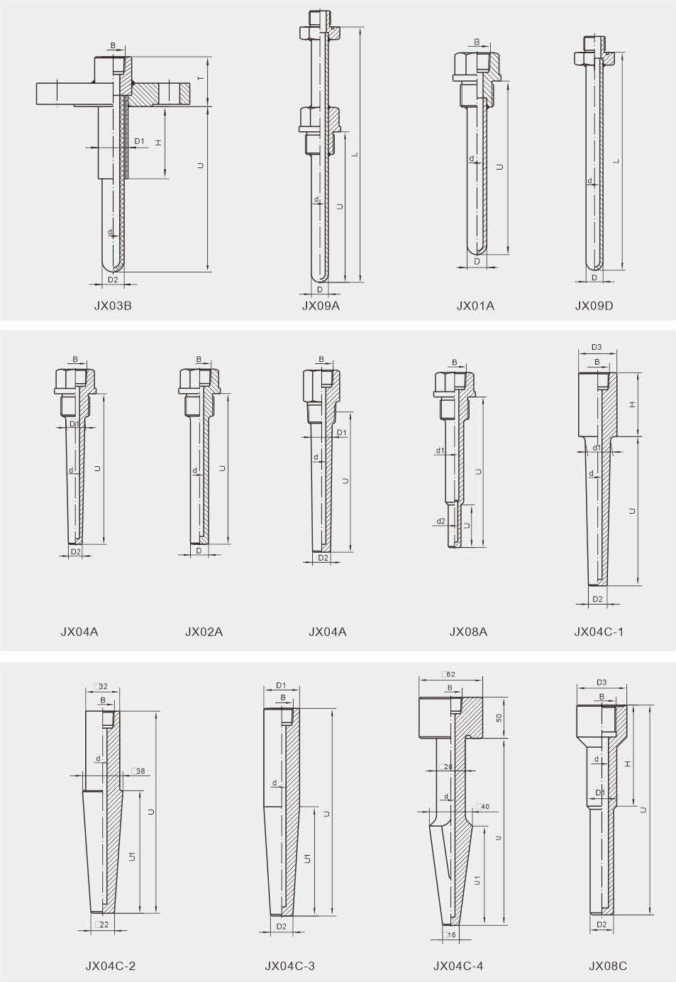 用于焦爐蓄頂測溫,熱電偶插深接近2米采用四方加強盒及加強筋確保產品水平安裝時在高溫環境下的不會變形。采用活動法蘭連接,可以調節插深。