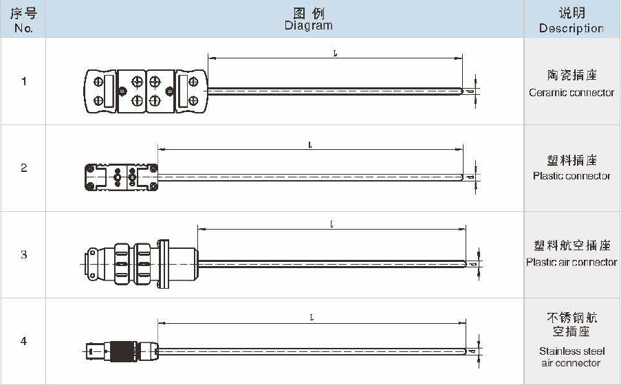 插座式熱電偶(阻)接線采取插拔式結(jié)構(gòu),具有安裝方便、重量輕的優(yōu)點(diǎn),我公司配有各種形式的陶瓷、塑料及不銹鋼材質(zhì)的插座。